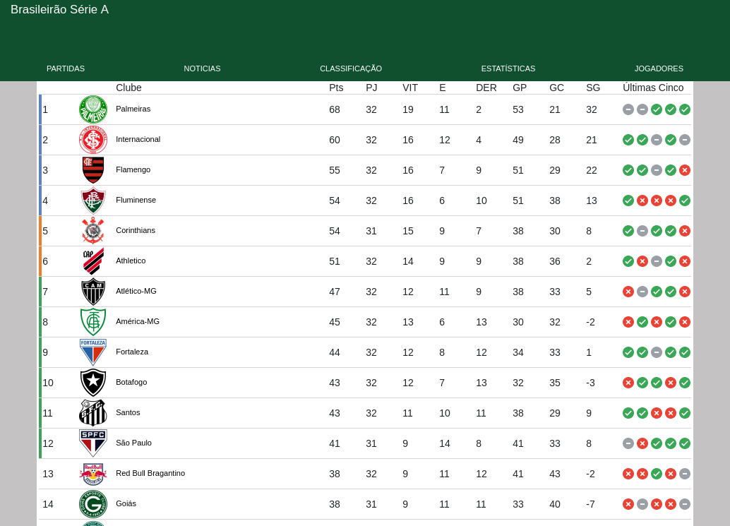 Tabela e informações do Campeonato Brasileiro Série A